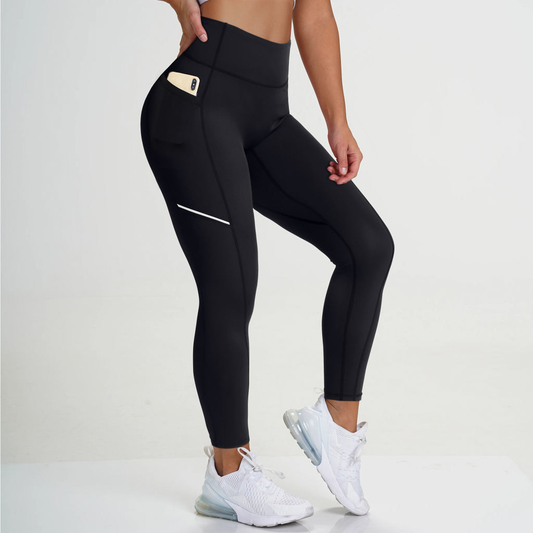 Women's high quality mid waist yoga leggings with zipper pockets.